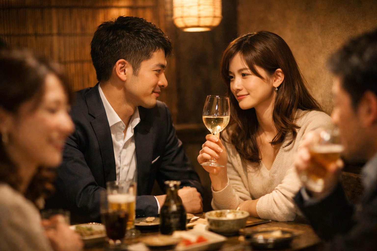 木曜日の夜、雨上がりの新宿。ネオンが濡れたアスファルトに溶け込むように反射している。店の名前は「灯(あかり)」。和モダンを売りにした個室居酒屋で、薄暗い照明と木の香りが、必要以上に人を落ち着かせる。